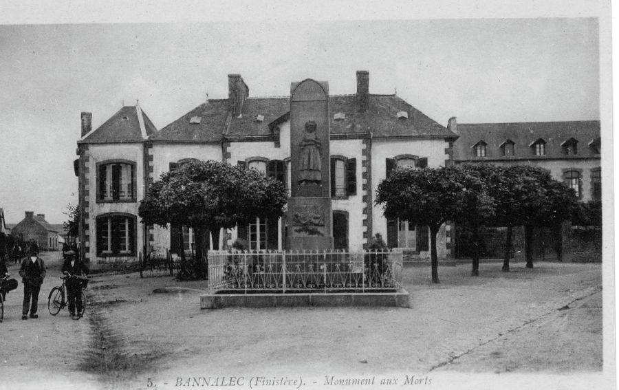 Parmi les 743 monuments des 4 départements bretons, 375 sont construits dans le cimetière, soit la moitié d’entre eux. L’édification des monuments aux morts dans le cimetière (exonéré des interdits de la loi de séparation de 1905) ou près de l’église marque la prévalence du choix d’un espace religieux. A Bannalec, le monument est devant la Mairie, à l’emplacement qui deviendra plus tard la place Charles de Gaulle. Ce choix n’est pas neutre en particulier au regard de la laïcité. Yves Tanguy, maire de 1912 à 1942, radical-socialiste engagé, souhaitait la construction d’un monument « civique », laïque et républicain, commun à tous les Bretons sur la place de la mairie.